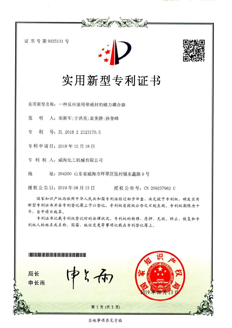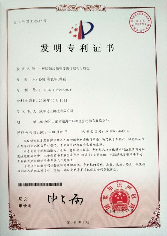 公司建有磁力驅動測試試驗室、攪拌模擬試驗室、反應釜流體混合攪拌重點實驗室等,科研力量雄厚。截至2024年,公司共承擔近280項自主/合作開發任務,先后承擔省級新產品開發任務25項,其中23項產品已達到國內水平。獲得各類省、市級技術創新獎30余項;參與起草、修訂標準共8項,GB/T30098-2013實驗室用磁力驅動反應釜標準、HG/T3648-2011磁力驅動反應釜標準、GB/T29254-2012實驗室反應釜用控制器標準、NB/T47002.1~47002.4-2019壓力容器用復合板;已獲得授權專利95項,其中發明專利19項,實用新型專利69項,外觀專利7項;擁有專有技術和核心技術40余項。