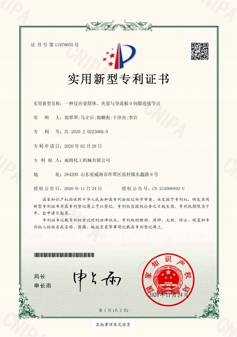 截止2024年擁有高壓反應釜領域授權專利共95項,其中發明專利19項、實用新型專利69項、外觀專利7項,并持續在高壓反應釜領域開展關鍵核心技術攻關