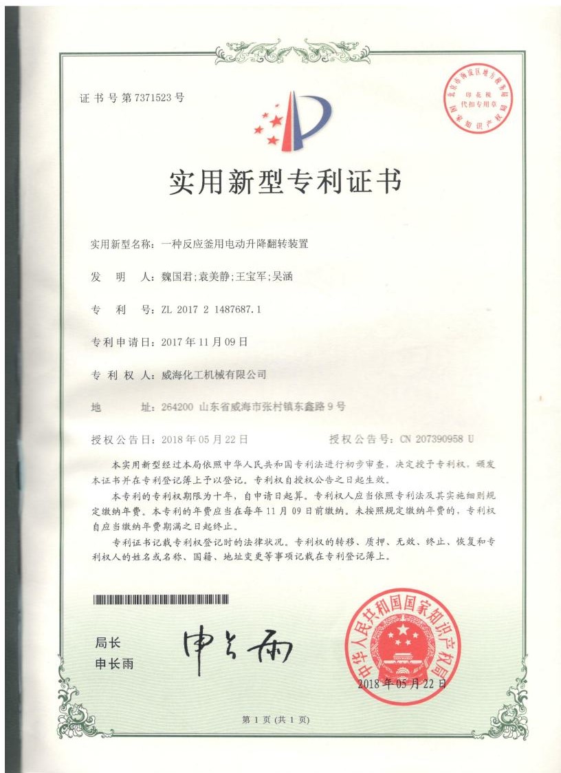 實用新型專利一種反應釜用…